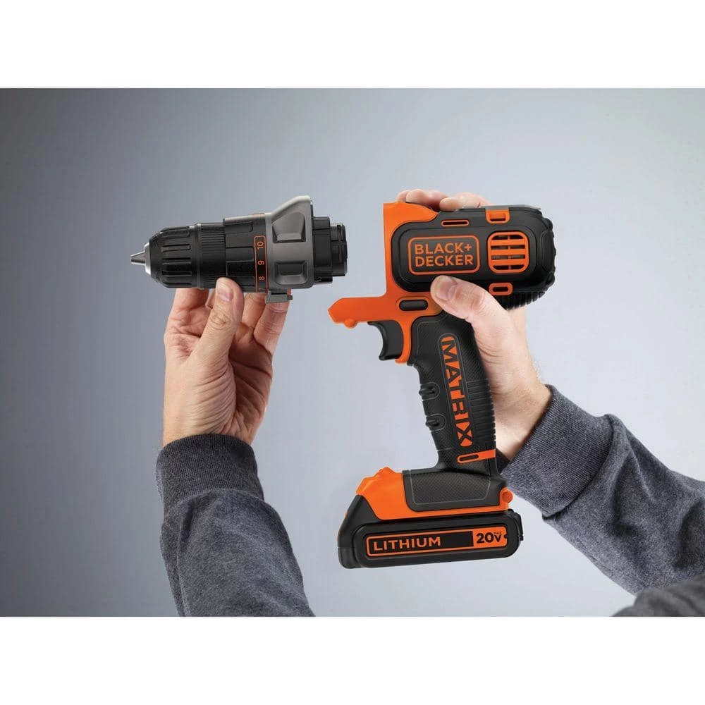 BLACK+DECKER BDCDMT120C 20-Volt Max Drill/Driver is part of the Matrix Quick Connect System and was designed with the performance needed for any household task. This compact drill/driver offers a lightweight lithium battery which holds a charge for up to 18 months and is part of the Matrix Quick Connect System which allows users to quickly change attachments for any project need. The Matrix Quick Connect System offers performance and value in a simple and practical way for power tool users to grow their toolbox at their own pace. Within this system users can access the industry’s most popular tools, some of which were traditionally limited to professionals, while offering savings up to 42% versus purchasing bare tools separately. In addition to the drill/driver attachment there are 6 additional attachments available as part of the Matrix System including an Impact Driver, Oscillating Multi-Tool, Jig saw, Detail Sander, Router and Trim Saw.