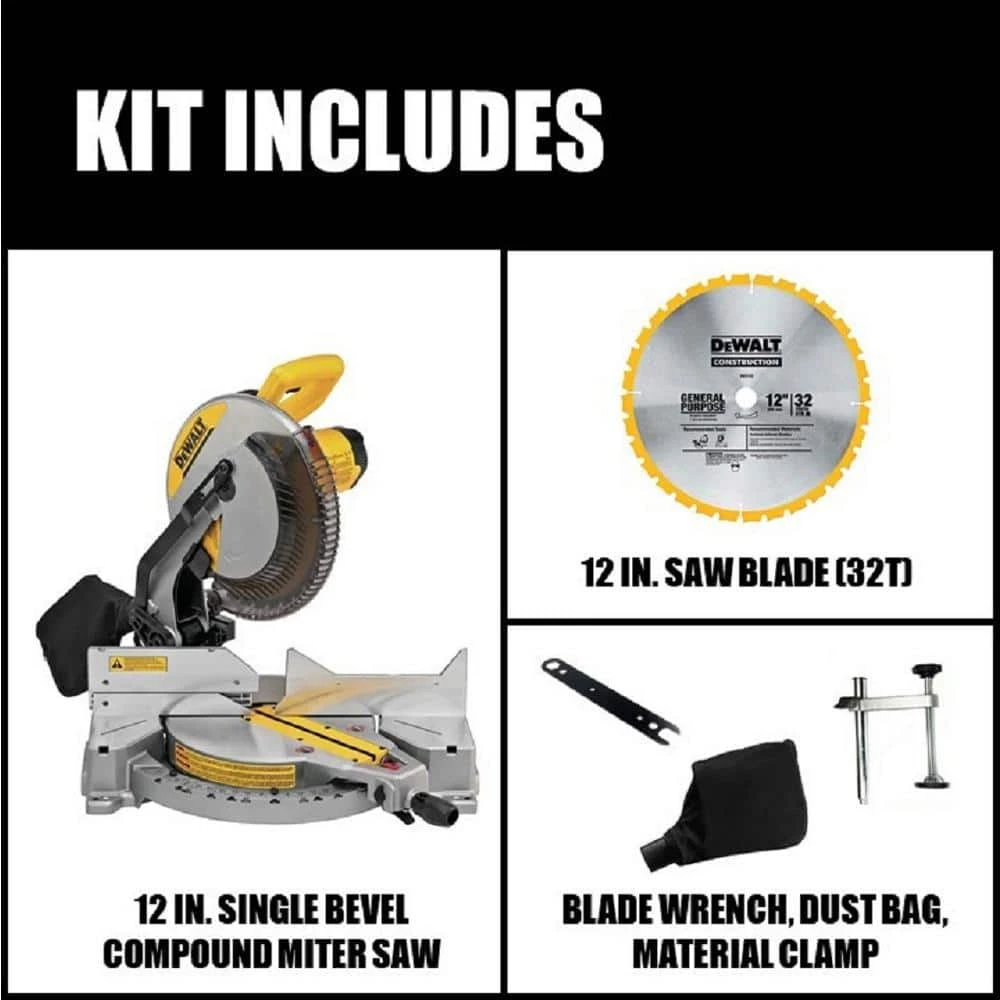 The DEWALT DWS715 12 in. Single-Bevel Compound Miter Saw is powered by a 15 Amp motor to drive 4,000 rpm, delivering extended power and durability. This 12-in miter saw features a stainless-steel miter detent plate and cam miter lock that provide repeatable accuracy and durability with easy adjustments. This DEWALT miter saw has tall sliding fences that support 5-1/2 in. of base molding vertically and 5-1/2 in. of crown molding vertically nested. The lightweight design and built-in carry handle make this a portable miter saw that’s easy to transport around the job site. It folds down for easy storage in your workshop or garage.