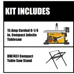 DEWALT 15 Amp Corded 8-1/4 in. Compact Jobsite Tablesaw with Compact Table Saw Stand