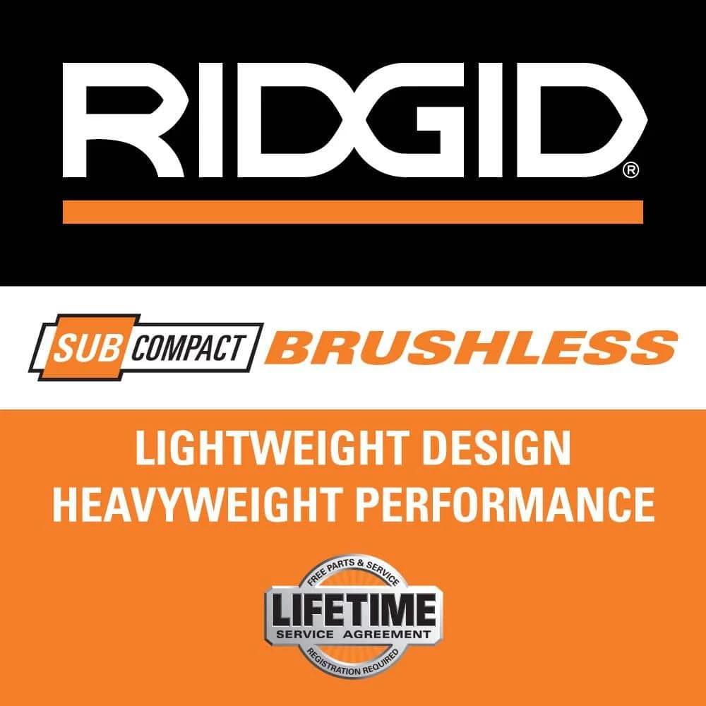 RIDGID introduces the R87012K 18V SubCompact Brushless 1/2 in. Drill/Driver Kit. The RIDGID SubCompact Brushless lineup pairs powerful brushless motor technology in a compact tool design. This kit features a SubCompact Brushless 1/2 in. drill/driver, (2) 2.0 Ah batteries, charger, and tool bag. The SubCompact Brushless 1/2 in. Drill/Driver delivers 500 in./lbs. of torque to power through a wide range of demanding drilling applications. This drill/driver is 15% more compact and 25% lighter weight compared to the 18V Brushless model (R86114), for a lightweight design and heavyweight performance. It features a 24-position clutch for added control and an LED light for improved visibility in low-light situations. As always, this RIDGID 18V SubCompact Brushless 1/2 in. Drill/Driver is 100% compatible with all RIDGID 18V batteries. Best of all, this kit is eligible for the Industry’s Best Lifetime Service Agreement, simply register within 90 days of purchase for FREE parts, FREE service, FOR LIFE. The RIDGID SubCompact Brushless 1/2 in. Drill/Driver Kit includes the R87012 18V SubCompact Brushless 1/2 in. Drill/Driver, (2) 2.0 Ah batteries, charger, belt hook with screw, driving bit, and tool bag.
