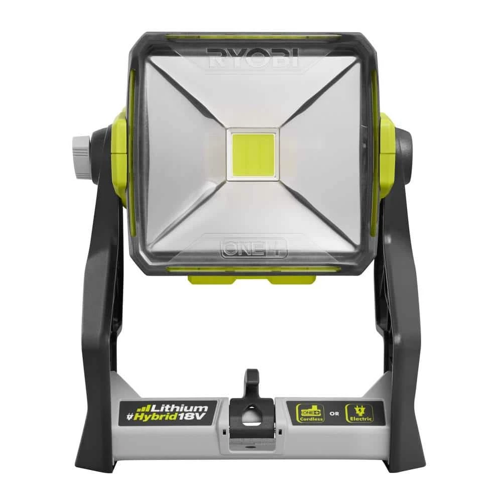RYOBI introduces the 18V ONE+ Hybrid 20-Watt LED Work Light (Tool-Only). Never run out of power with the convenient option of using a ONE+ Battery (sold separately) to operate the light, or switch over to electric power with an extension cord for prolonged use. In addition to the convenience of dual power functionality, the ONE+ Work Light produces over 2400 Lumens to illuminate large work spaces and runs cooler than halogen or incandescent lights. Best of all, it is part of the RYOBI ONE+ System of over 260 cordless tools that all work on the same battery platform. Backed by the RYOBI 3-Year Manufacturer’s Warranty, this Hybrid 20-Watt LED Work Light includes an operator’s manual. Battery, charger, and extension cords sold separately.