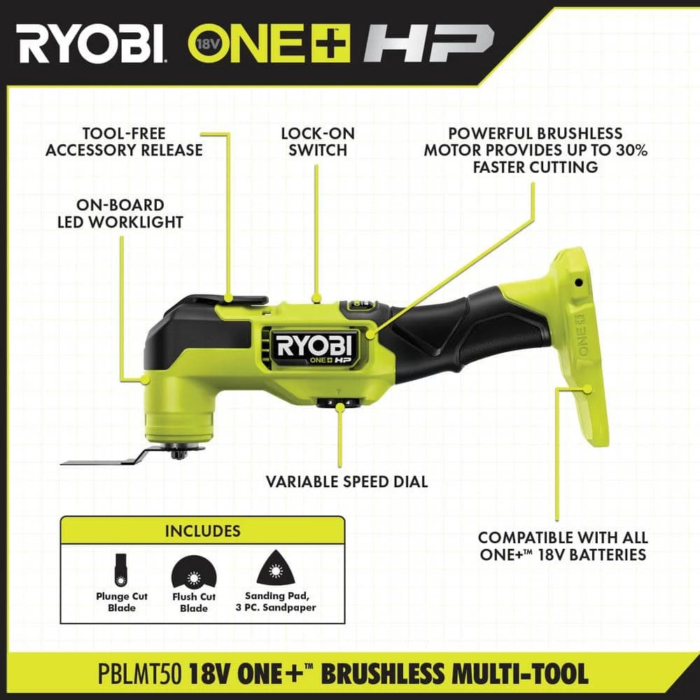 - Part of the RYOBI 18V ONE+ System of over 260 cordless tools